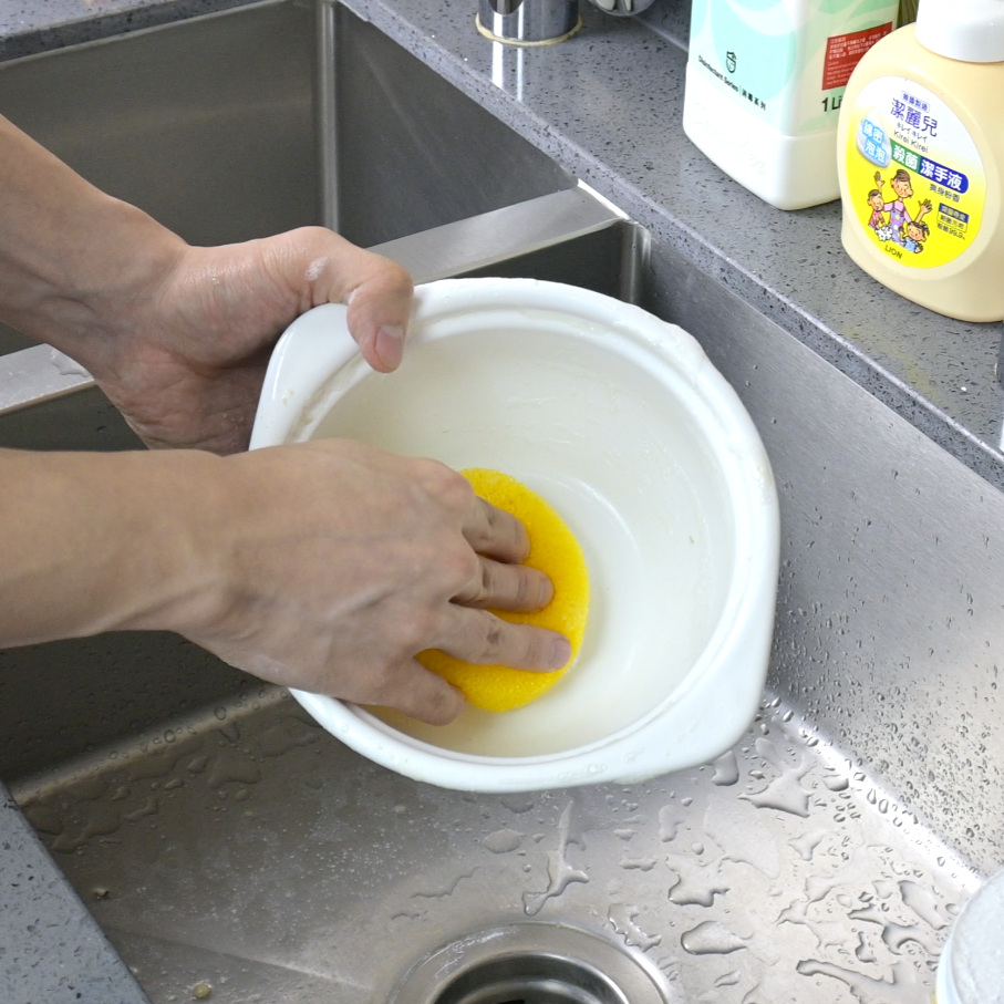 最後倒掉鍋裡的水,用海綿把污漬洗。