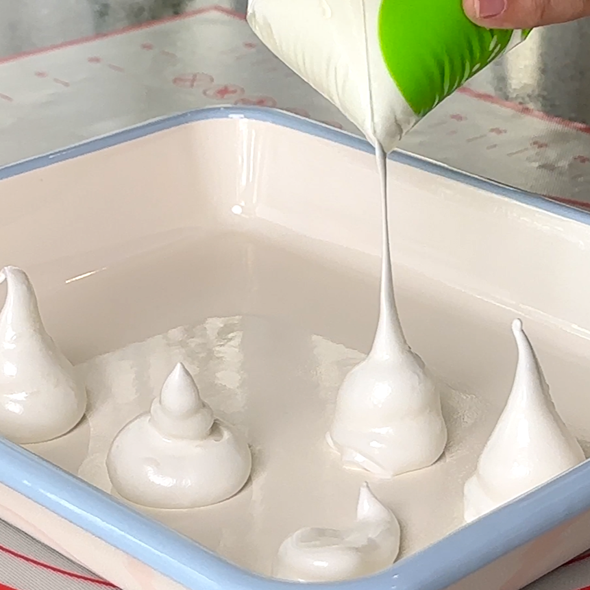 4. 將唧好的蛋白霜放入已預熱的焗爐,用90度焗約90分鐘,或焗至乾脆為止。
