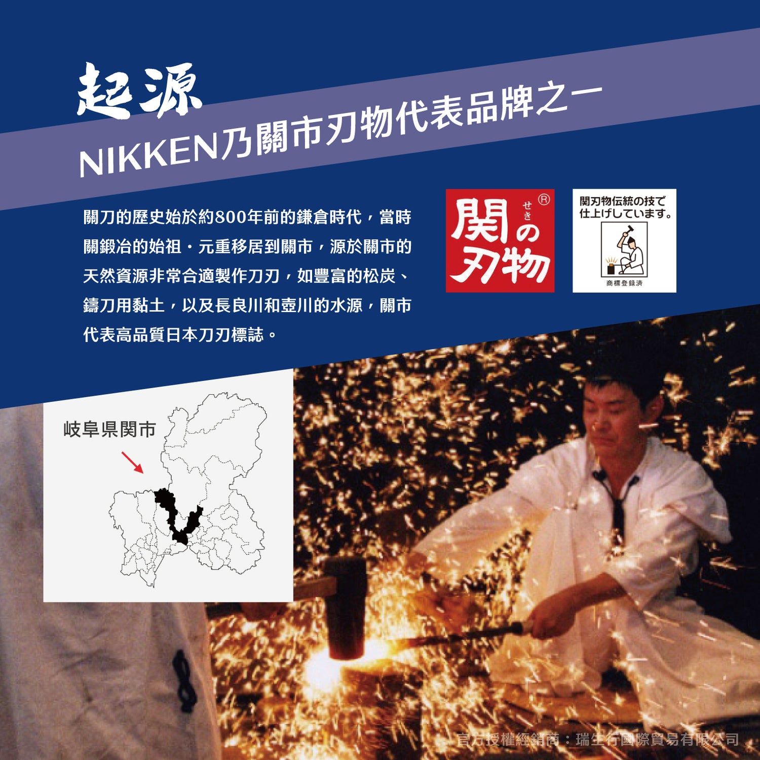 源於著名銳器產地 - 日本岐阜縣關市。致力設計及生產銳器,如刀、剪刀、廚刀、廚剪等......七十多年來的傳承和創新,匠人卓越的刀刃打造工藝,奠定了NIKKEN的銳器以銳利、耐用和精湛的工藝聞名於世。