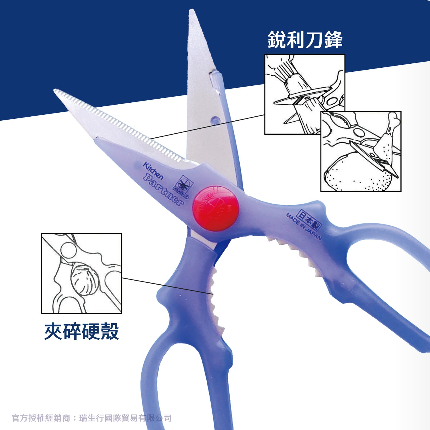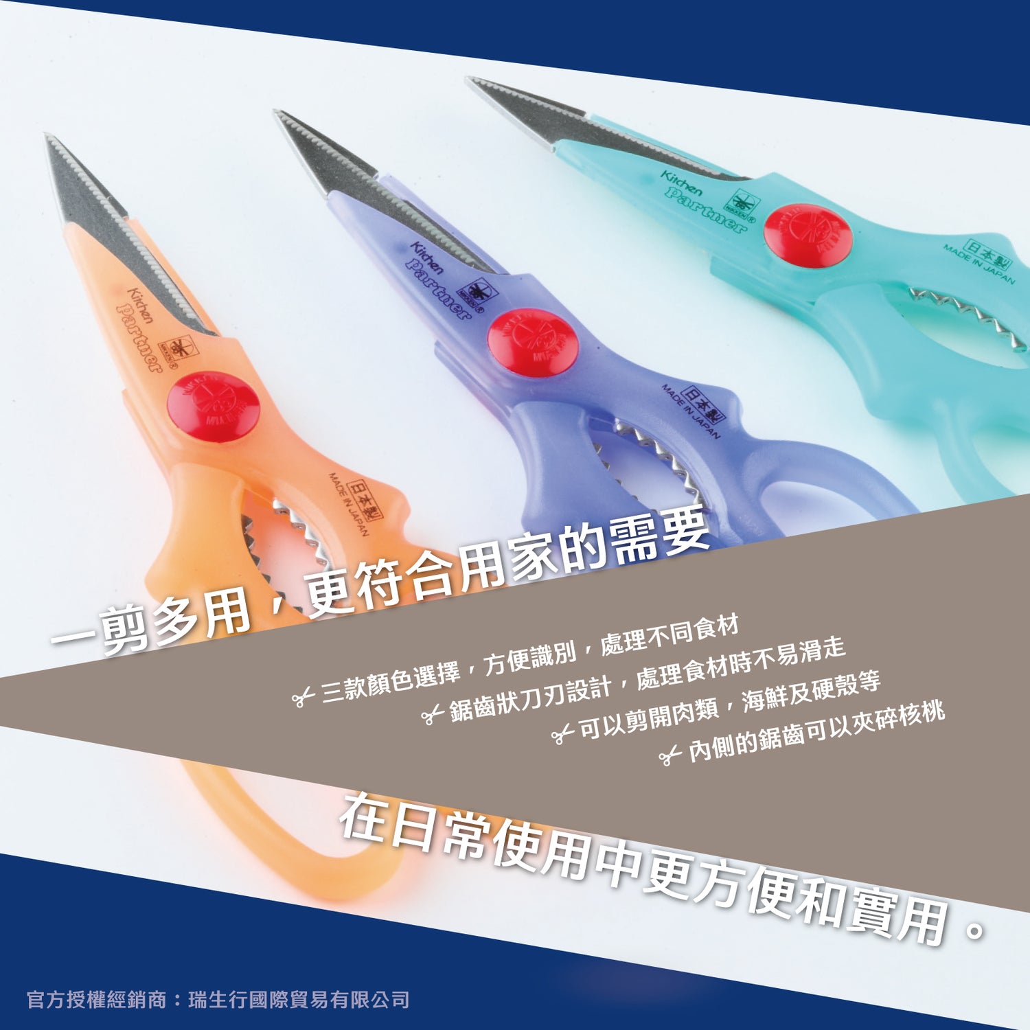 廚房剪刀是每個家庭都必備2把或以上, 用以分類處理生、熟食材或非食材類,家中有一把鋒利的廚剪,就能輕鬆剪開海鮮硬殼、雞腿骨或為幼童剪碎食物,廚剪以首屈一指【日本高碳鋼】堅硬度和柔韌度達到平衡,使用俐落又省力,剪刀柄更是適合亞洲人手型設計。