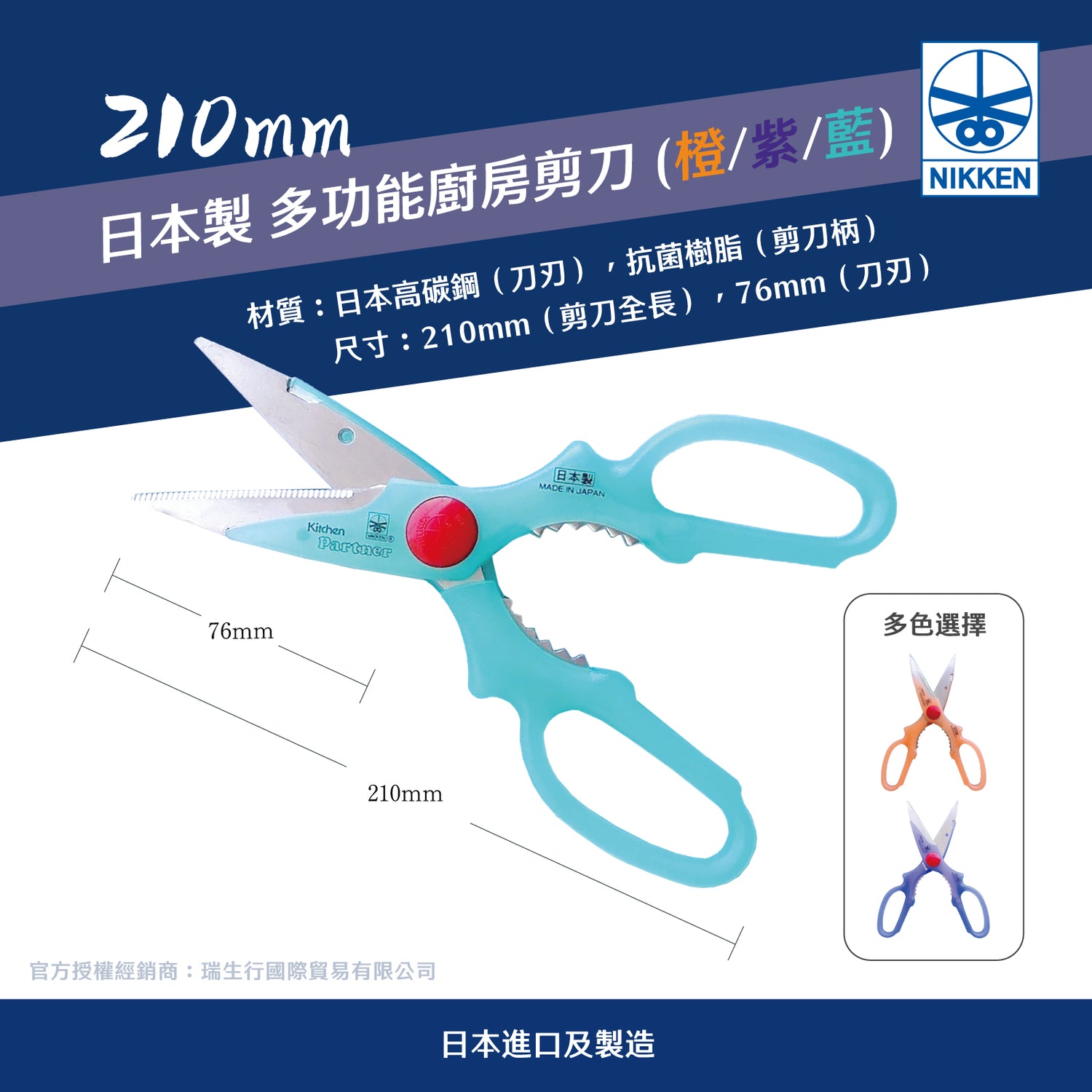 日本製日研 NIKKEN 蜻蜓牌 廚剪原產於日本關市 - 刃物的發源地。採用日本優質不鏽鋼和工匠的技術製作而成,鋒利、堅韌、多功能,是入廚不可缺少的工具。