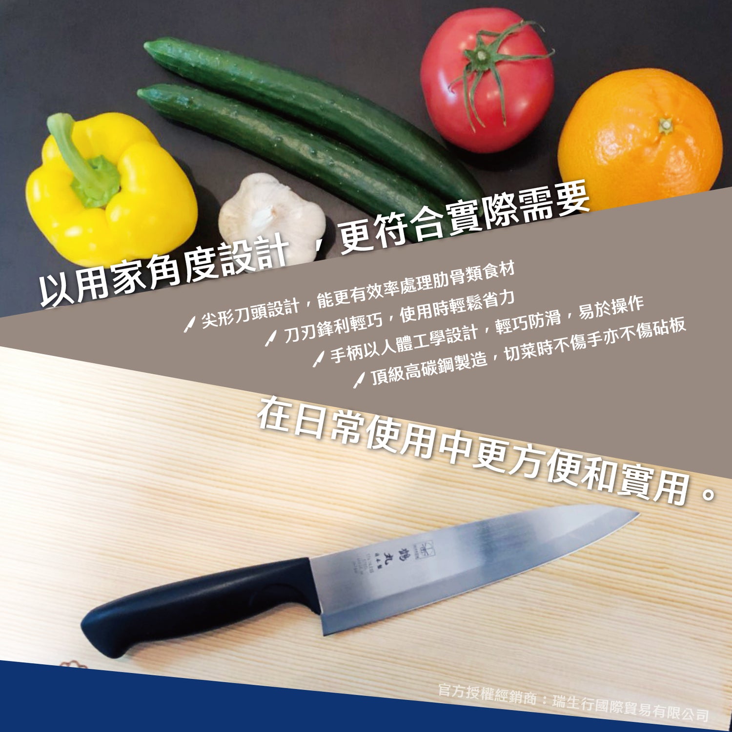 牛刀可以效率處理肉類、魚類、海鮮等,刀具以首屈一指【日本高碳鋼】堅硬度和柔韌度達到平衡,刀工俐落又省力,切菜不傷手亦不傷砧板。